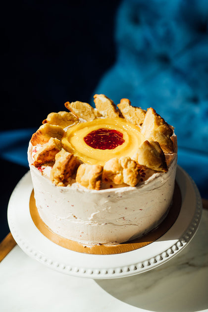 Just like the memory of summer around the campfire experience! We have just elevated that delicious summer treat into a cake topped with s’mores cookies.